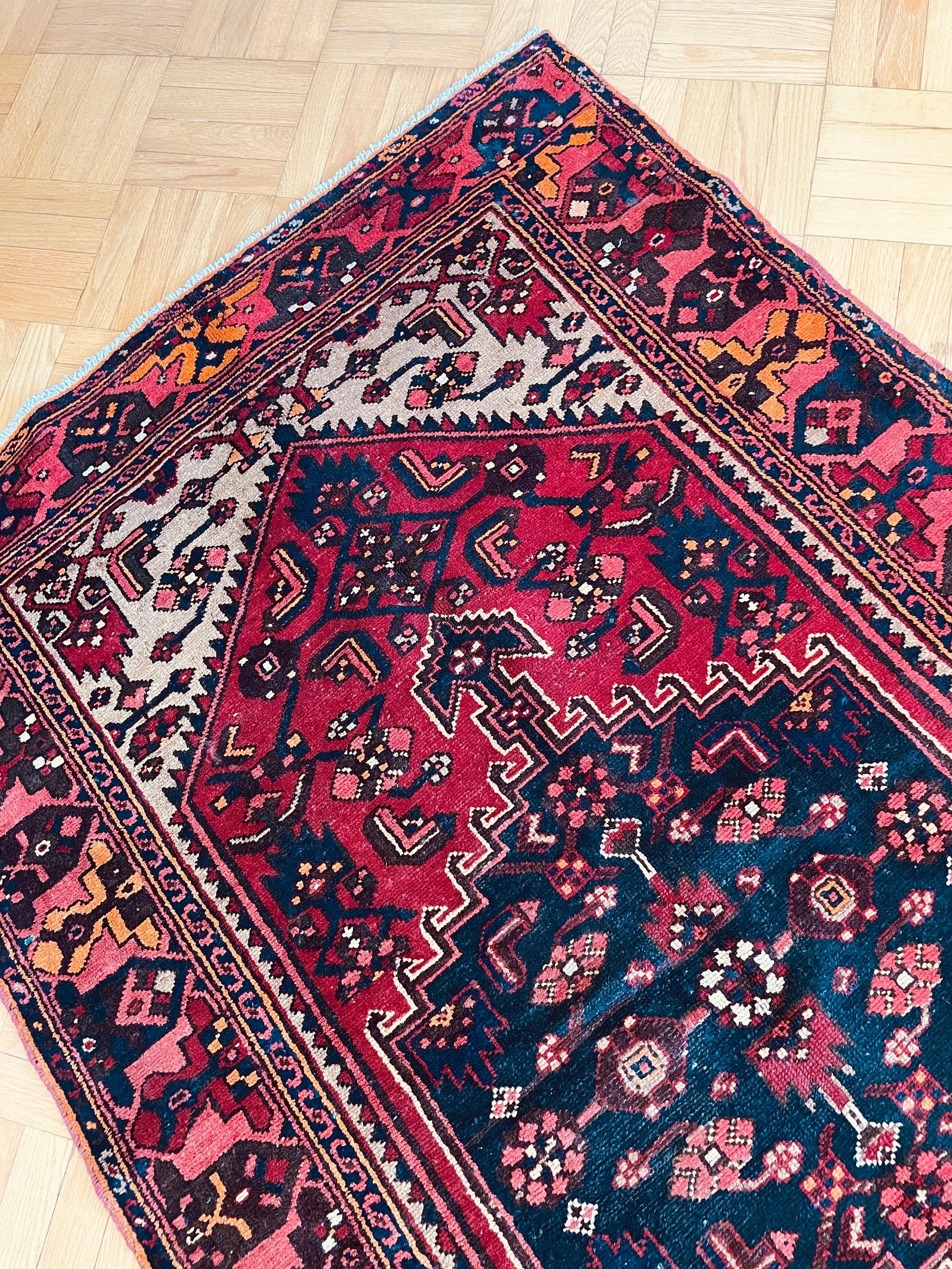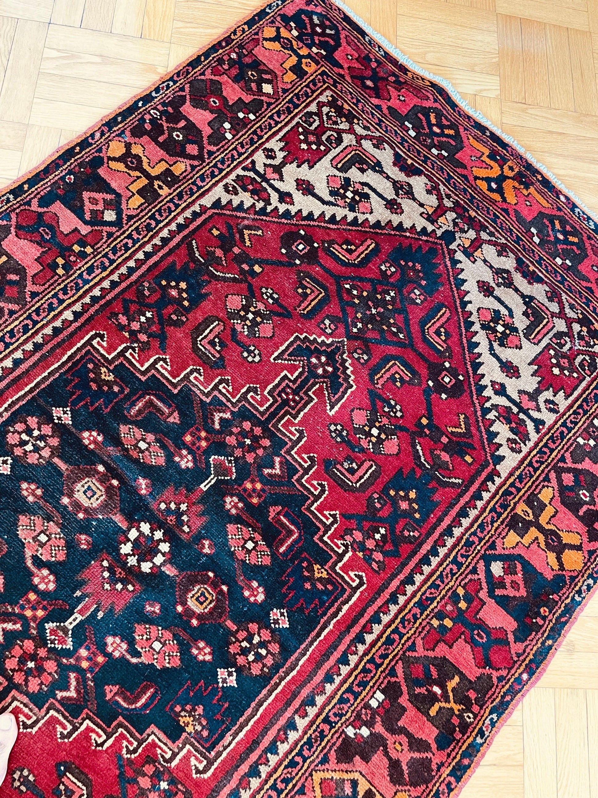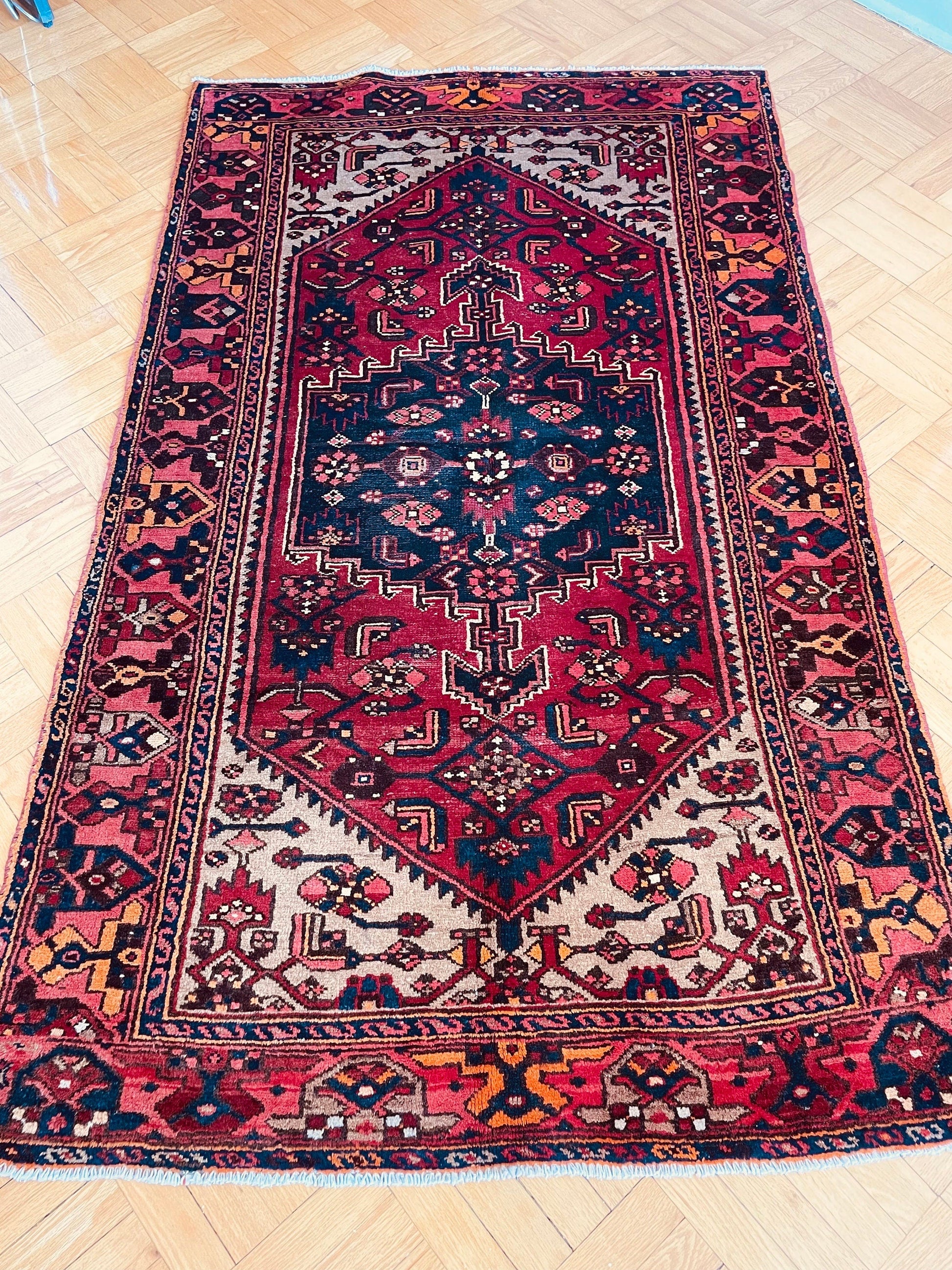 Vintage Rug 7' 1″ x 4′ ft. Hand-Knotted Soft Wool Caucasian Carpet In Excellent Condition