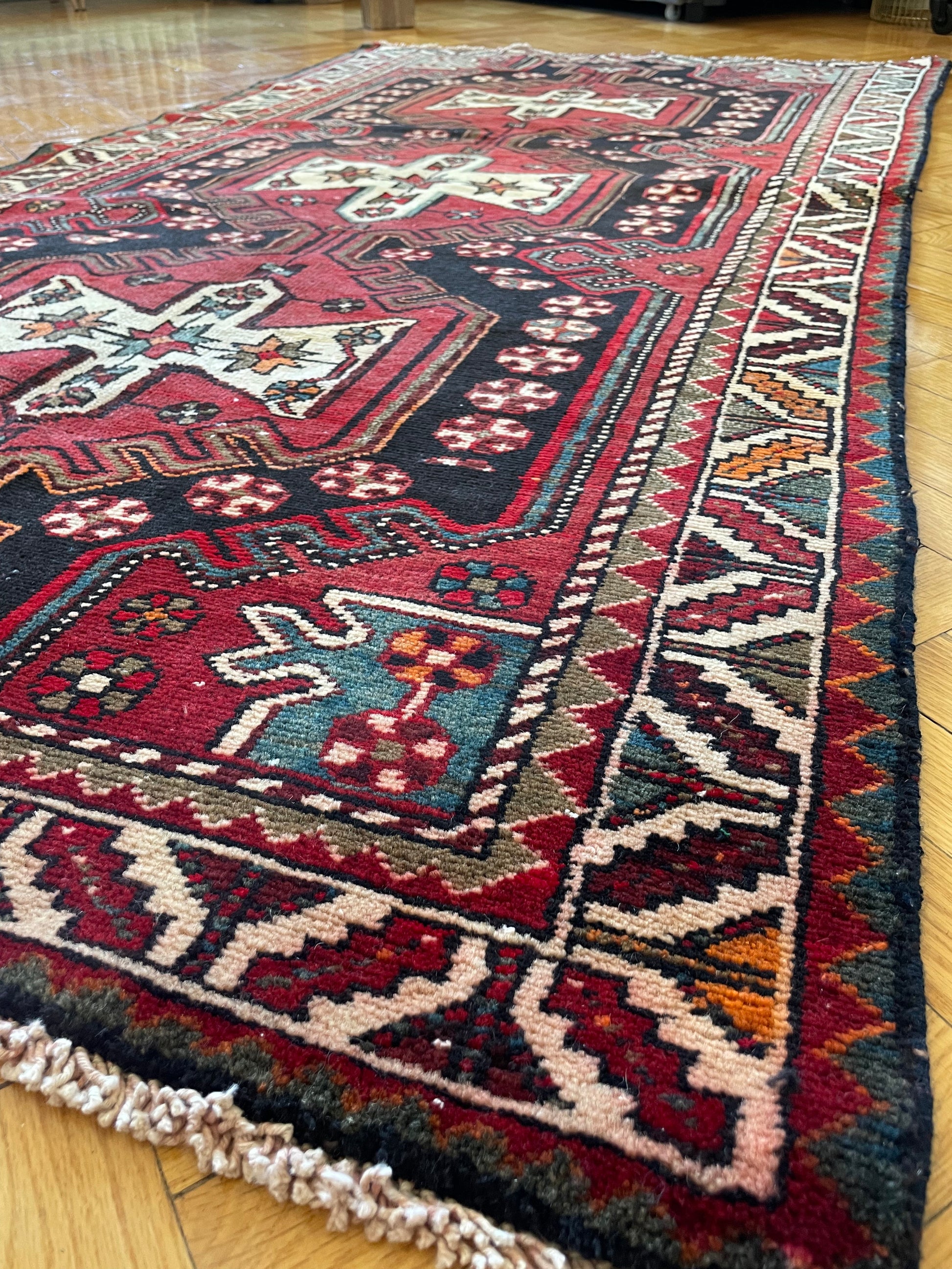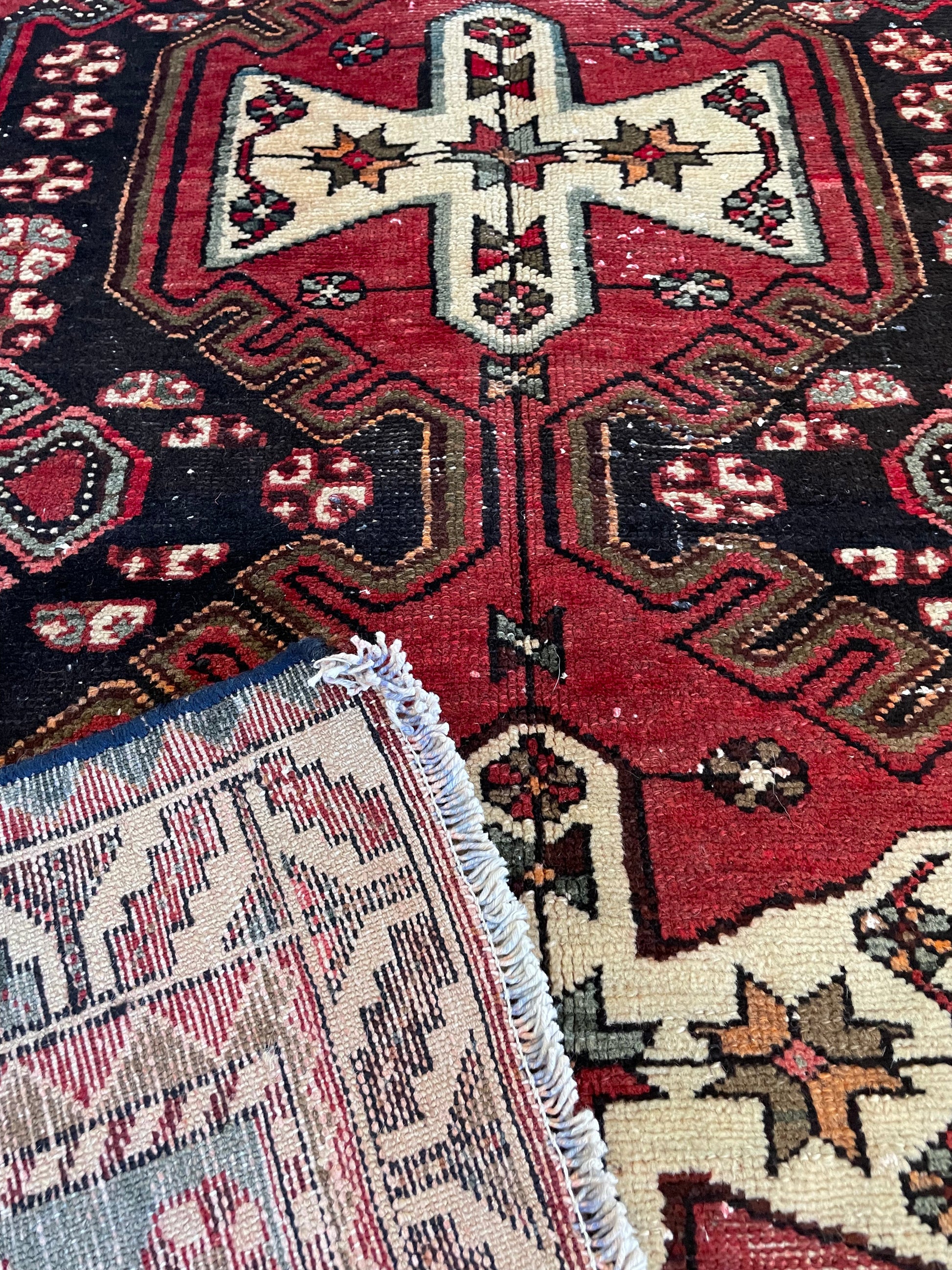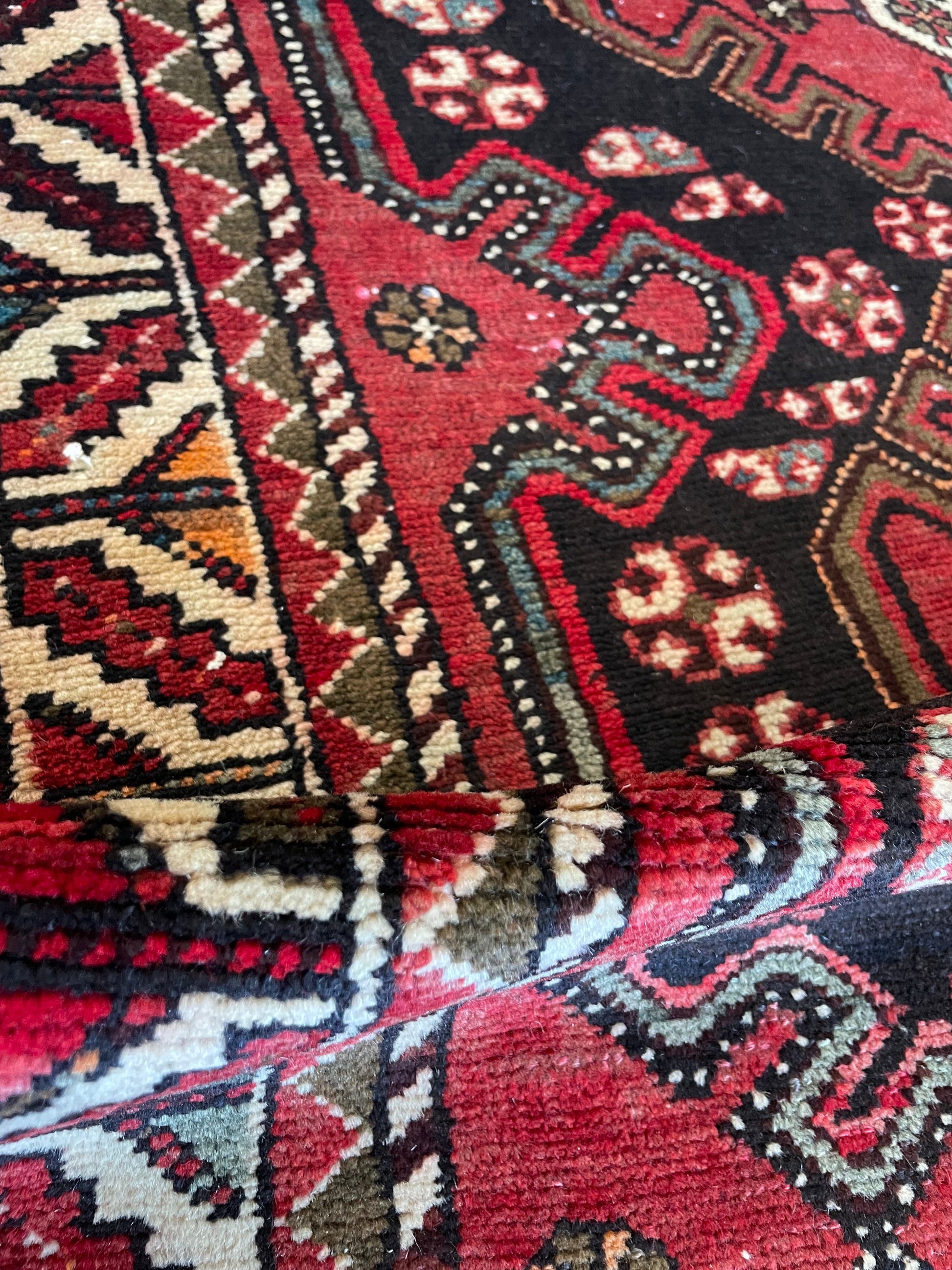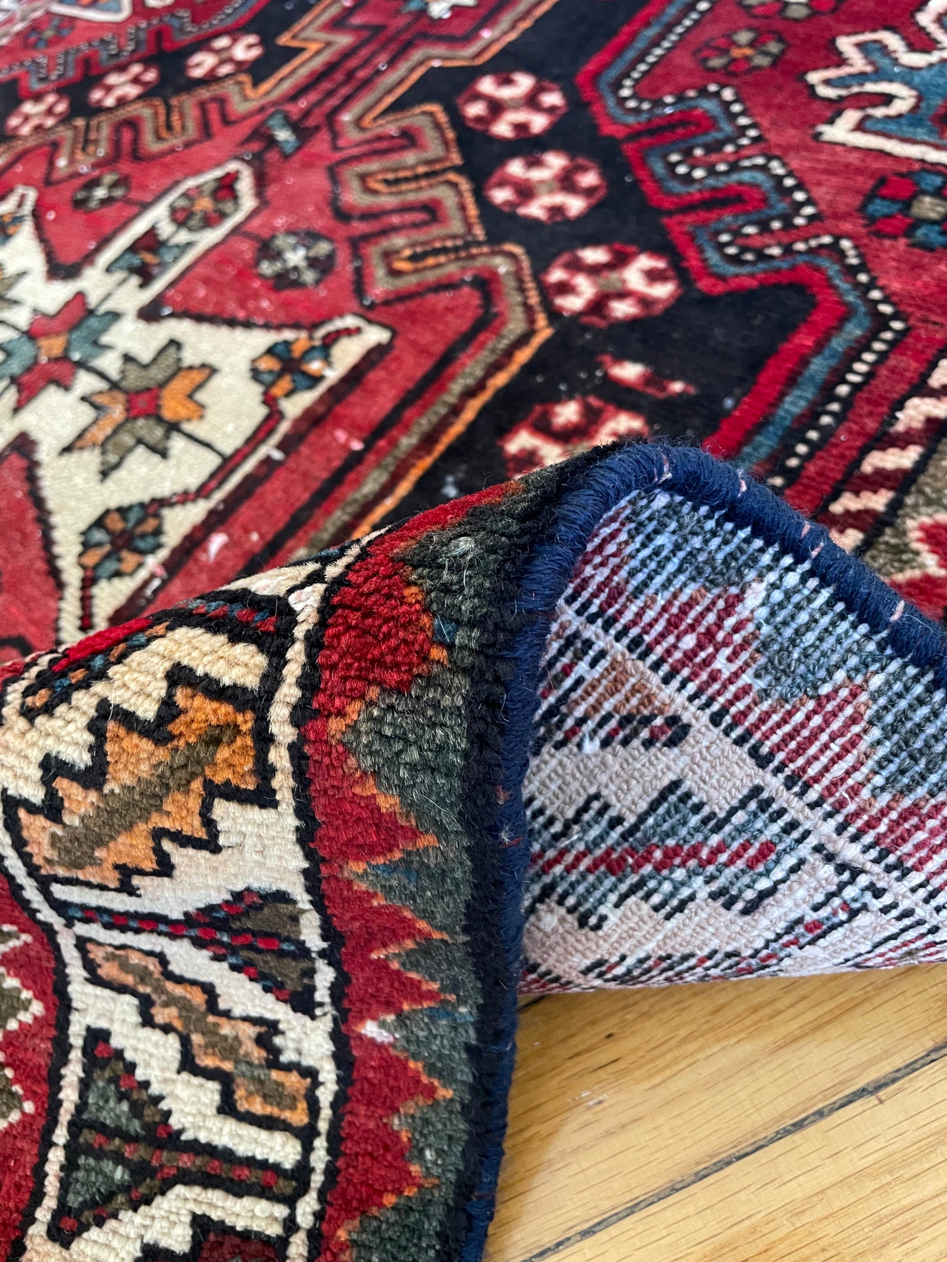 Beautiful Vintage 7' 2" x 3' 7" ft. Geometric Persian area rug. Hand-Knotted Soft Wool Persian Carpet In good Condition