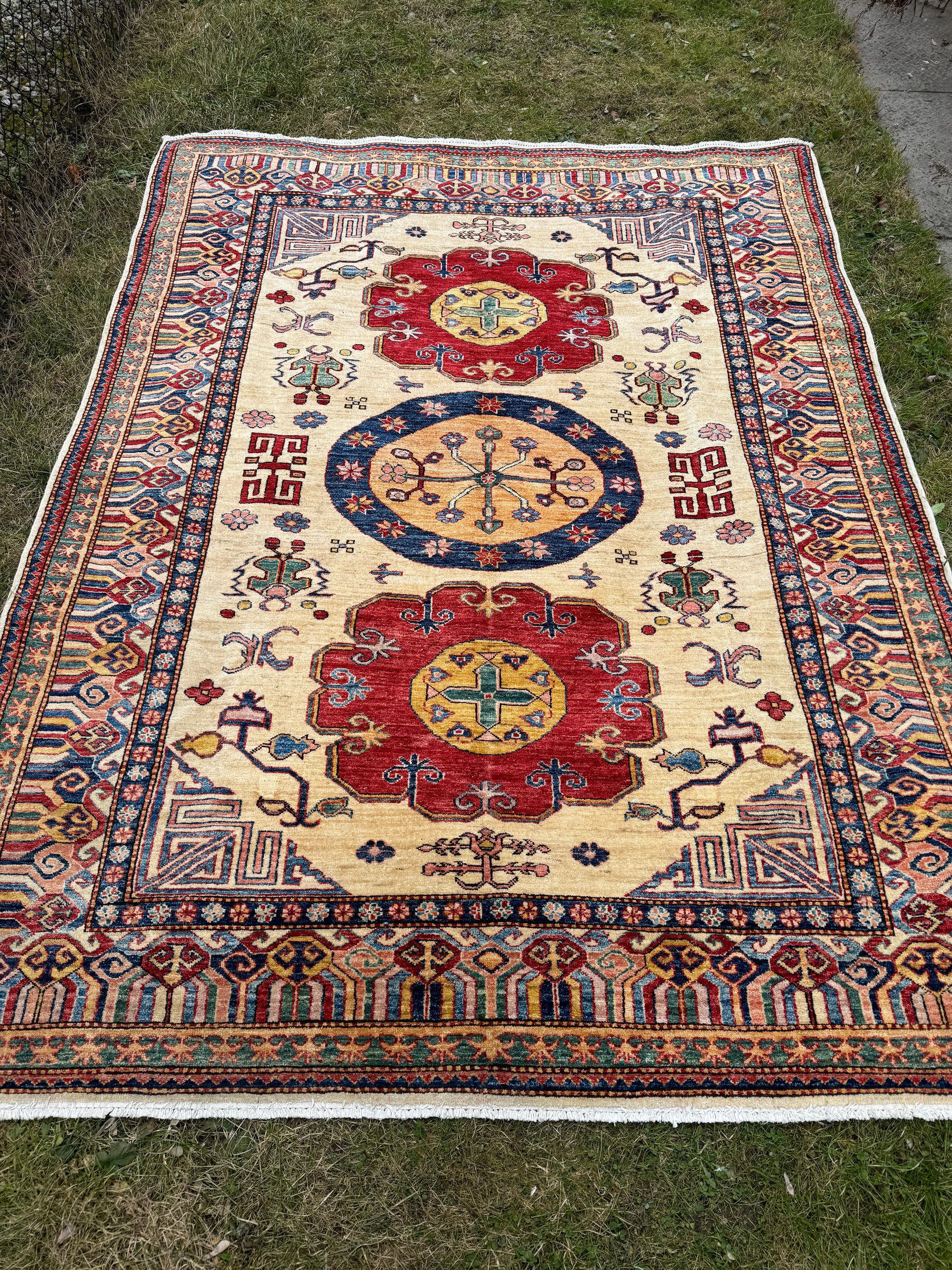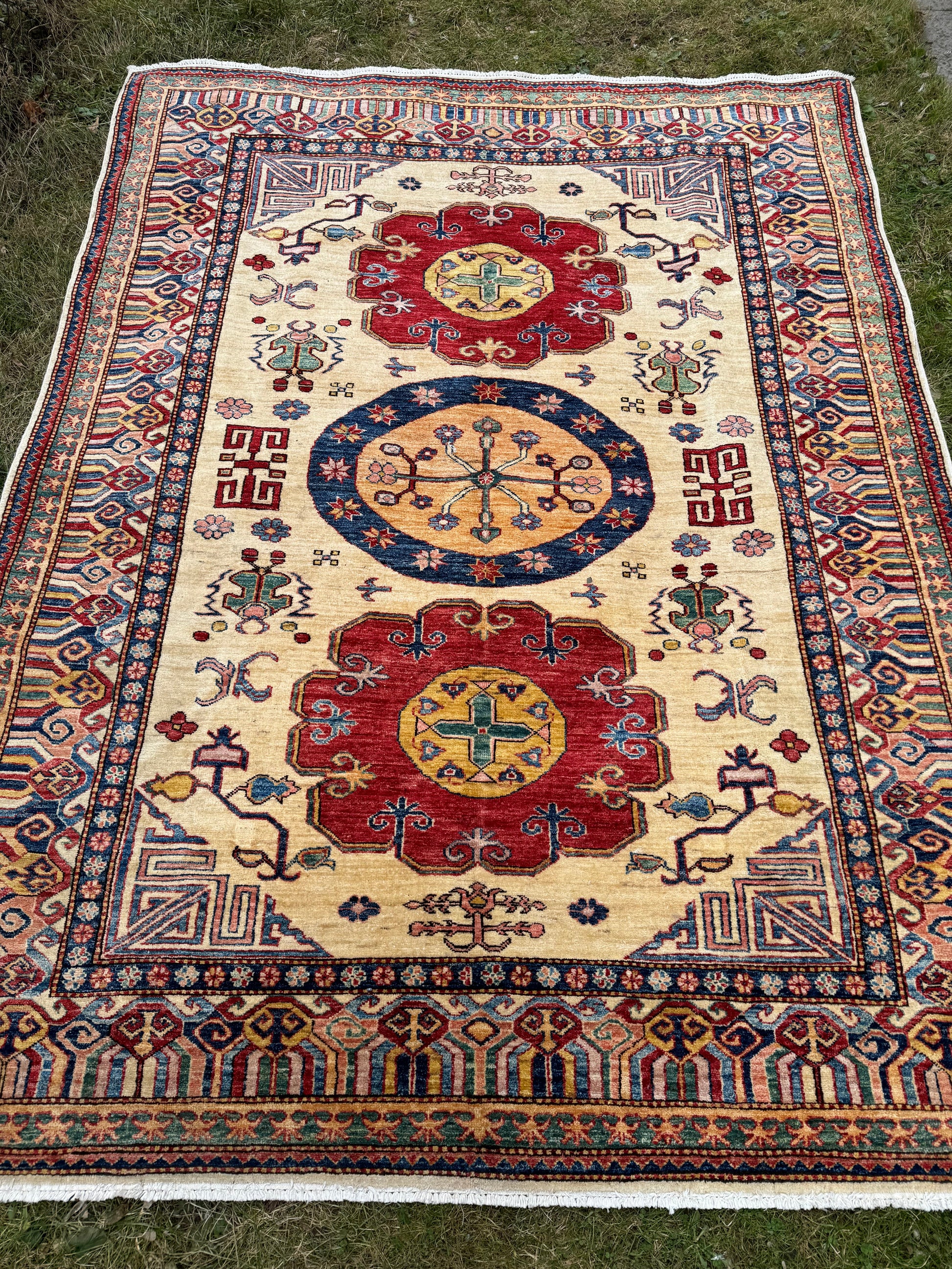 Super fine quality "Super Kazak", Handmade by Afghan weavers.