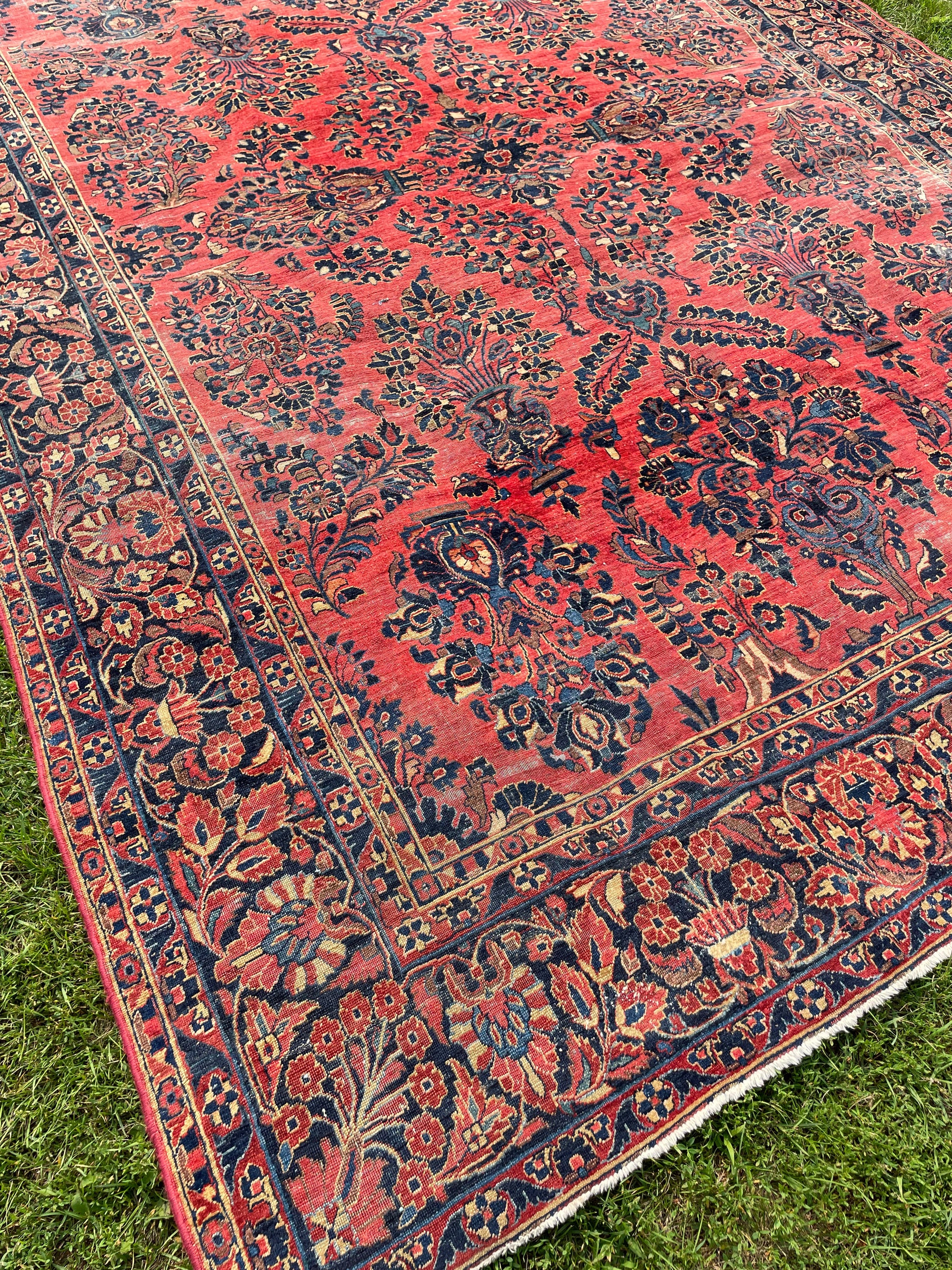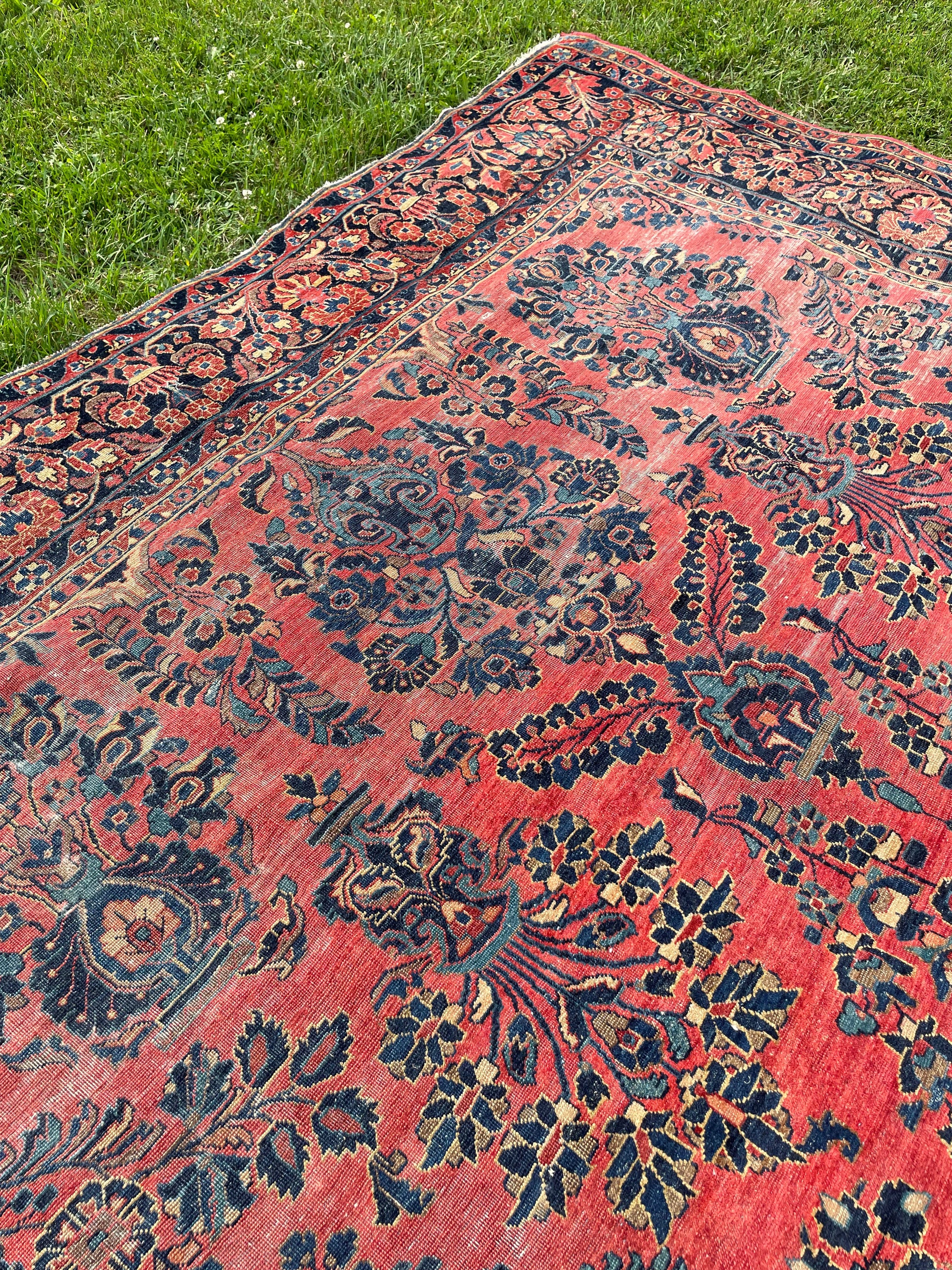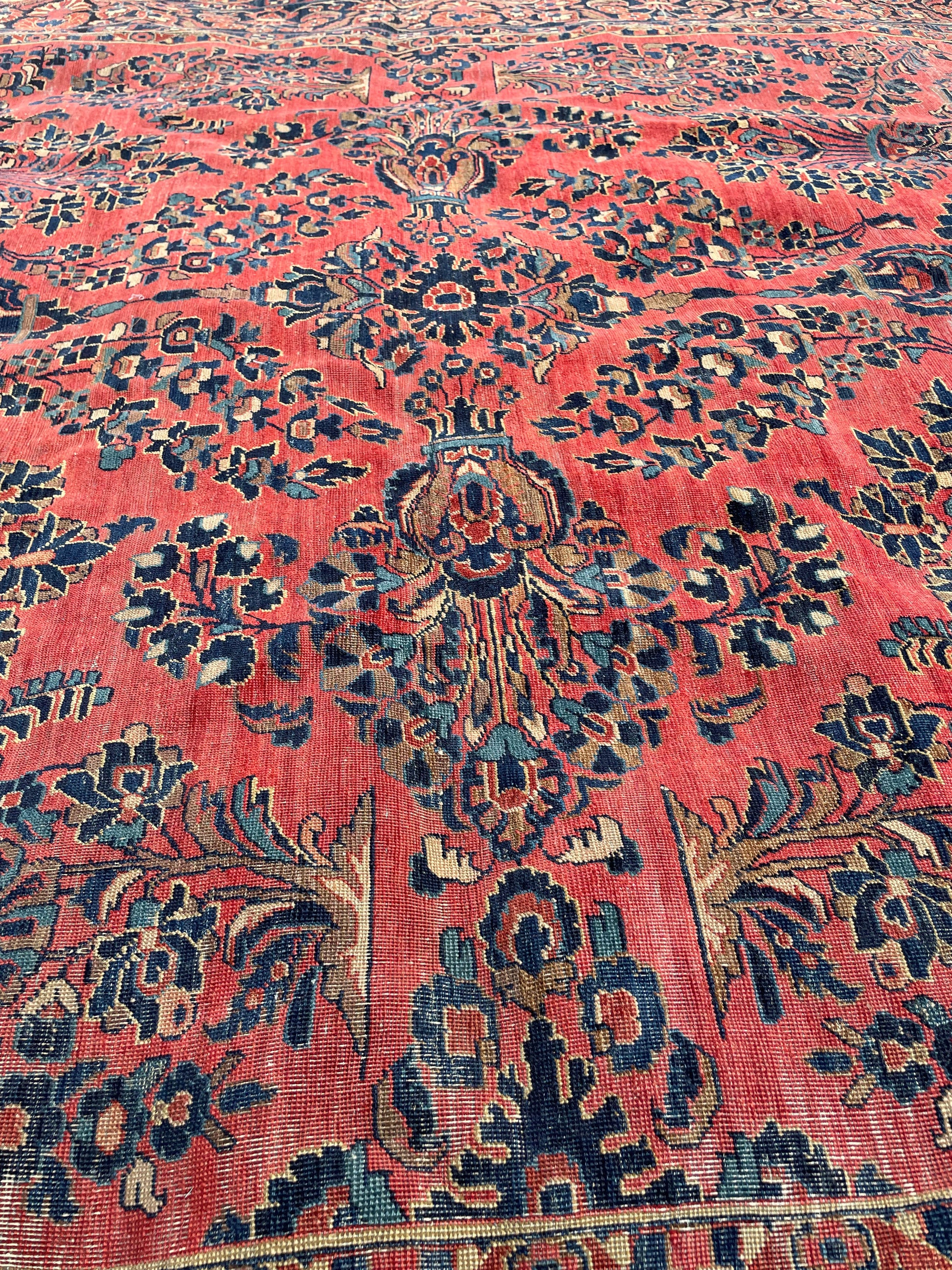 Features of this one-of-a-kind vintage Antique Persian Sarouk rug include: