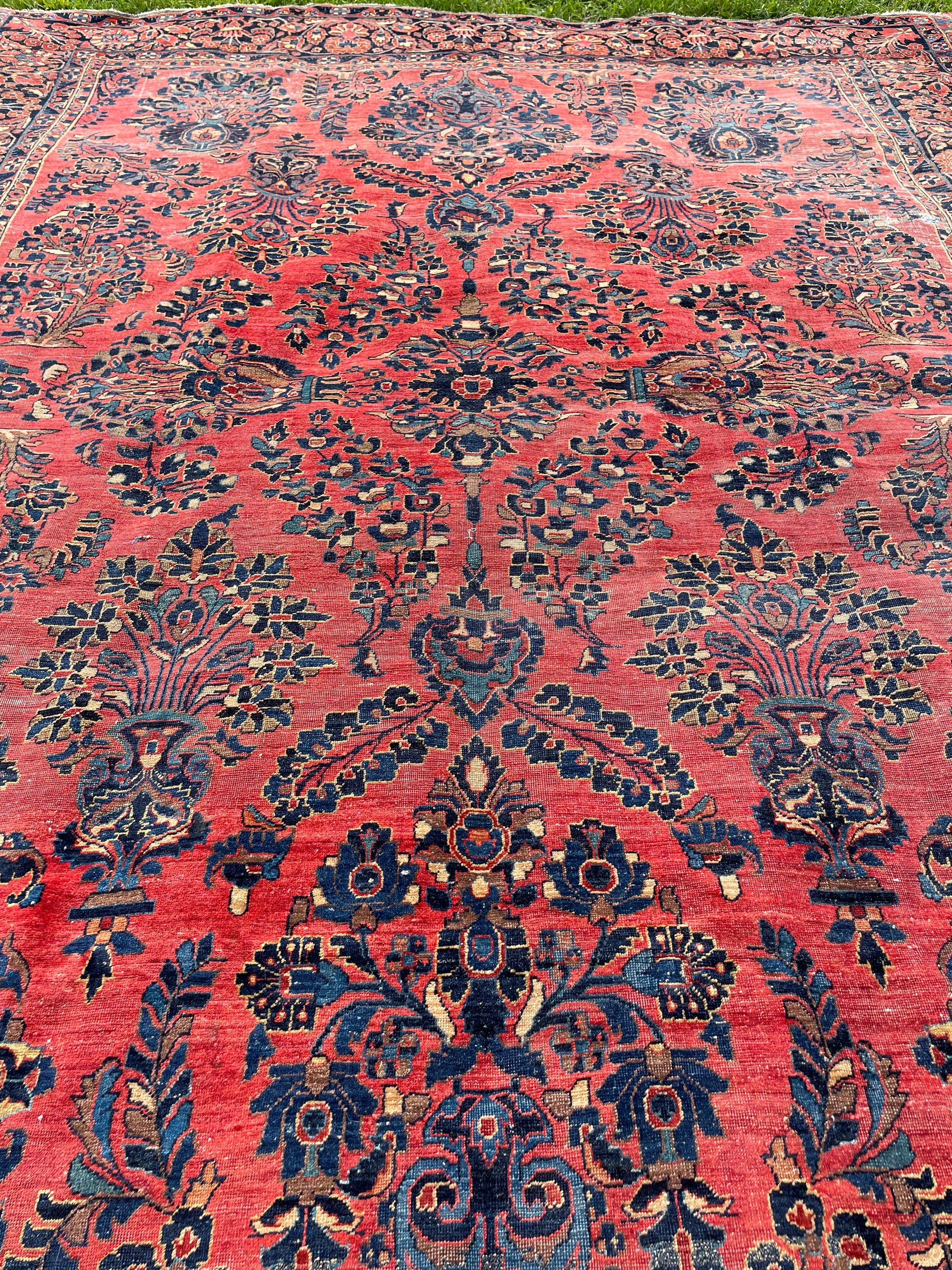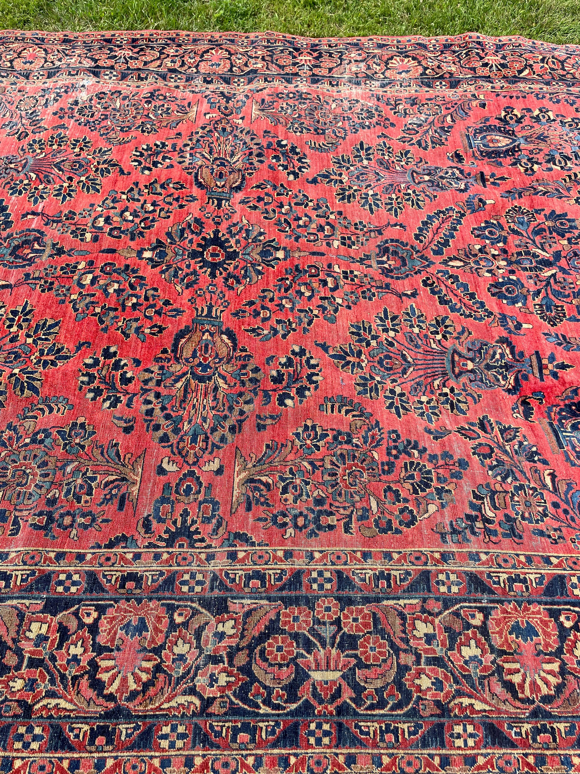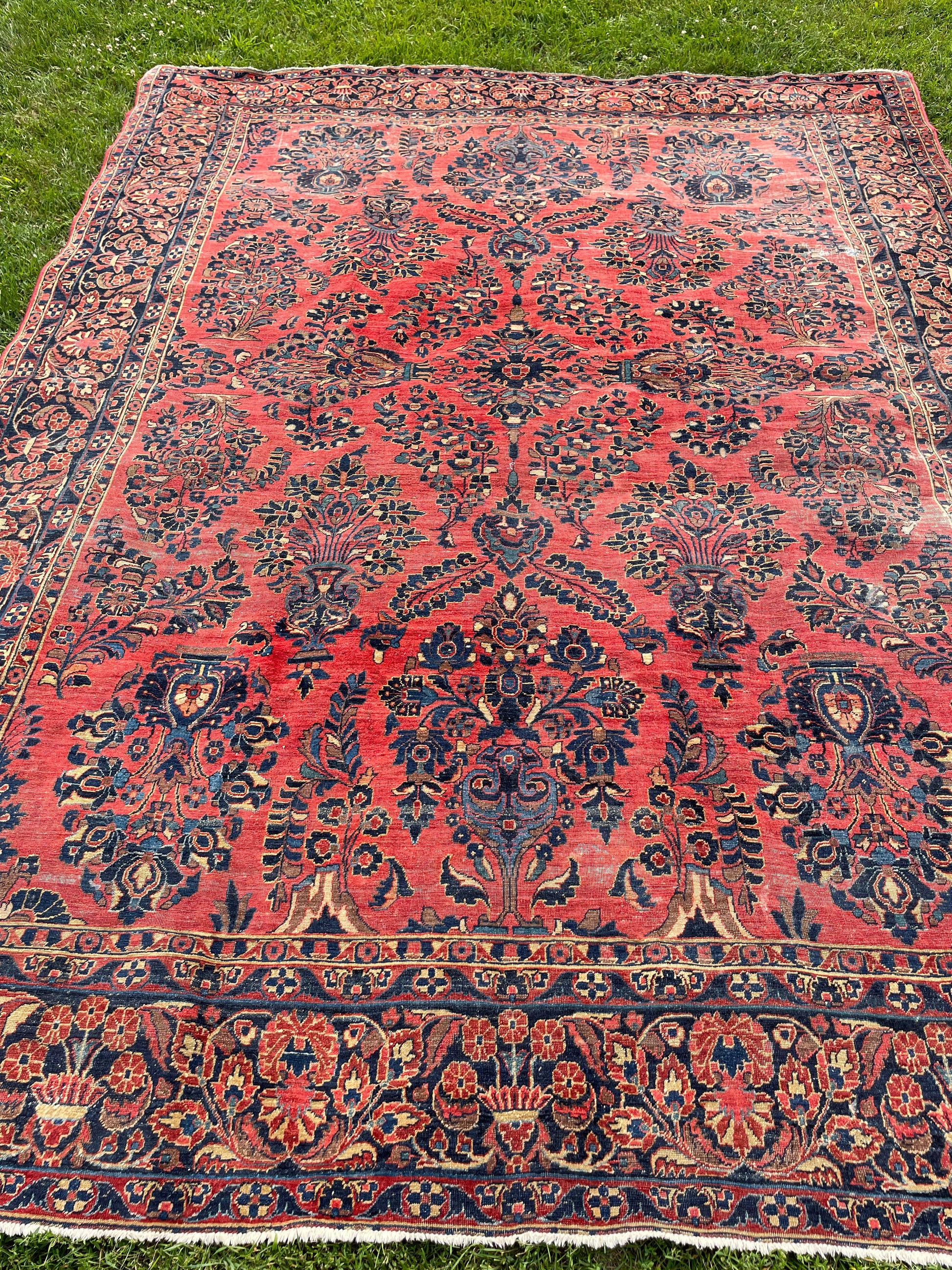Features of this one-of-a-kind vintage Antique Persian Sarouk rug include: