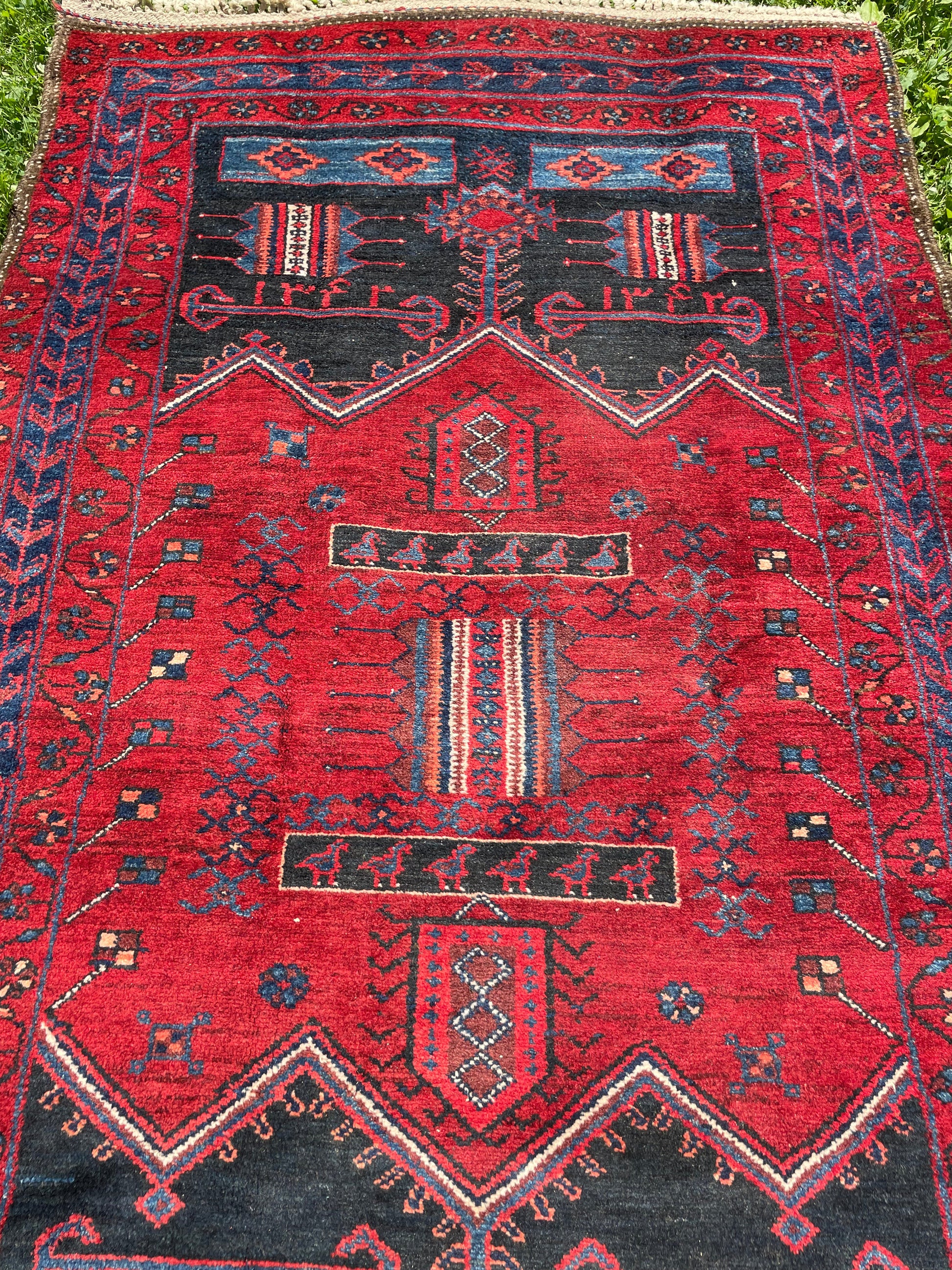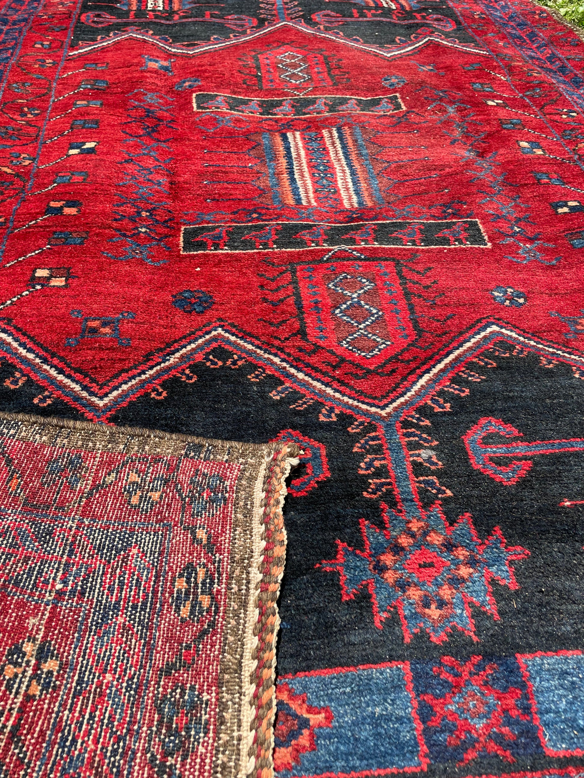 Due to the vintage and handmade nature of our rugs, there may be imperfections, repairs, and signs of wear that lend character and are not considered defects. Our rugs are woven by hand and may not be a perfect rectangle. Colors may vary based on your screen or home lighting. I try to photograph each rug as accurately as possible in daylight, but please be aware that they will look different in low light. I’m always happy to send photos in lower lighting upon request or answer any questions you may have.